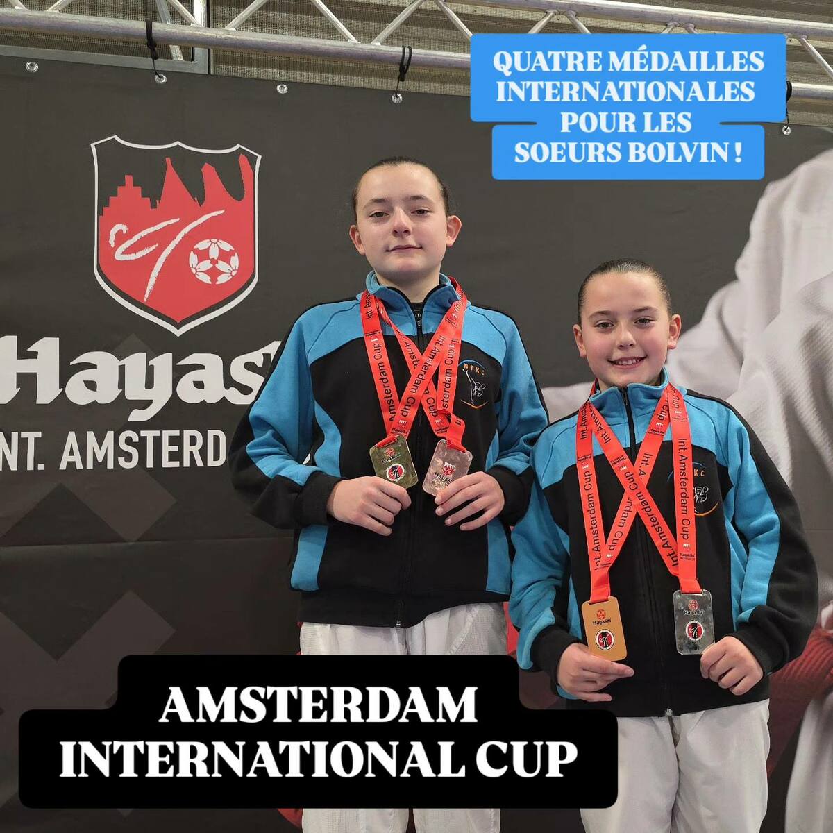Natalia BOLVIN NUNEZ IPUCHE remporte la médaille d'or en kata U14 et la médaille de bronze en combat U14. Clara décroche la médaille d'argent en kata U12 et la médaille de bronze en combat U12.